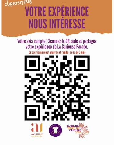 En parallèle, nous avons conçu, distribué et administré des flyers intégrant des QR codes renvoyant vers un questionnaire en ligne. Ce dispositif, utilisé pour la Curieuse Parade, le Curieux Banquet et les expositions, nous a permis de recueillir des données directes auprès des participants, en complément des observations qualitatives.
